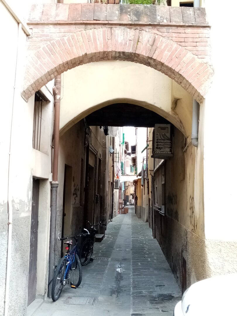 それ以外の道は、一般家屋ばかりでのんびりとした雰囲気が流れます~洗濯物がはためいていたり、ベビーカーのお母さんが散歩していたり、おっさんがチャリで徘徊していたり(笑)。おっさんと言えば、ルチニャーノに続く?いや、ルチニャーノを超えるおっさん度の高さで、たまたま来た時間帯(11時くらい)だからかもしれませんが、アルノルフォ宮前のおっさんの集団は忘れられません。他にアーチのある細い路地や柱廊もたくさんあり、昔の趣を残しつつ、今のイタリア人の日常生活もがっつり見られますよ。