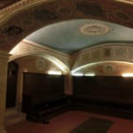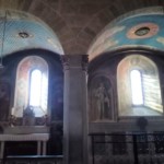 上りではフィレンツェを見下ろすことに集中してしまいますが、今度は下り、坂道の下に見えるフィエーゾレの町もとっても素敵。ひときわ目立つのがミーノ広場にあるドゥオモの鐘楼です。坂を下りきったら、そのままドゥオモに入ってみましょう。ドゥオモの正式名称は「聖ローモロ大聖堂」で、フィレーゾレの大司教座であり、元々のフィエーゾレにあった修道院を移設する形で1026年に建設されました。大聖堂はそのあと13世紀には鐘楼が、そして13世紀の拡張工事、19世紀には現在の形のファザートが完成し、今に至ります。ロマネスク様式で内部は質素ですが、主祭壇のある半ドーム天井のフレスコ画(聖ローモロの生涯)、向かって右にあるサルターティ礼拝堂(1466年に亡くなったフィエーゾレ大司教のレオナルド・サルターティのお墓)のフレスコ画がとても立派です。