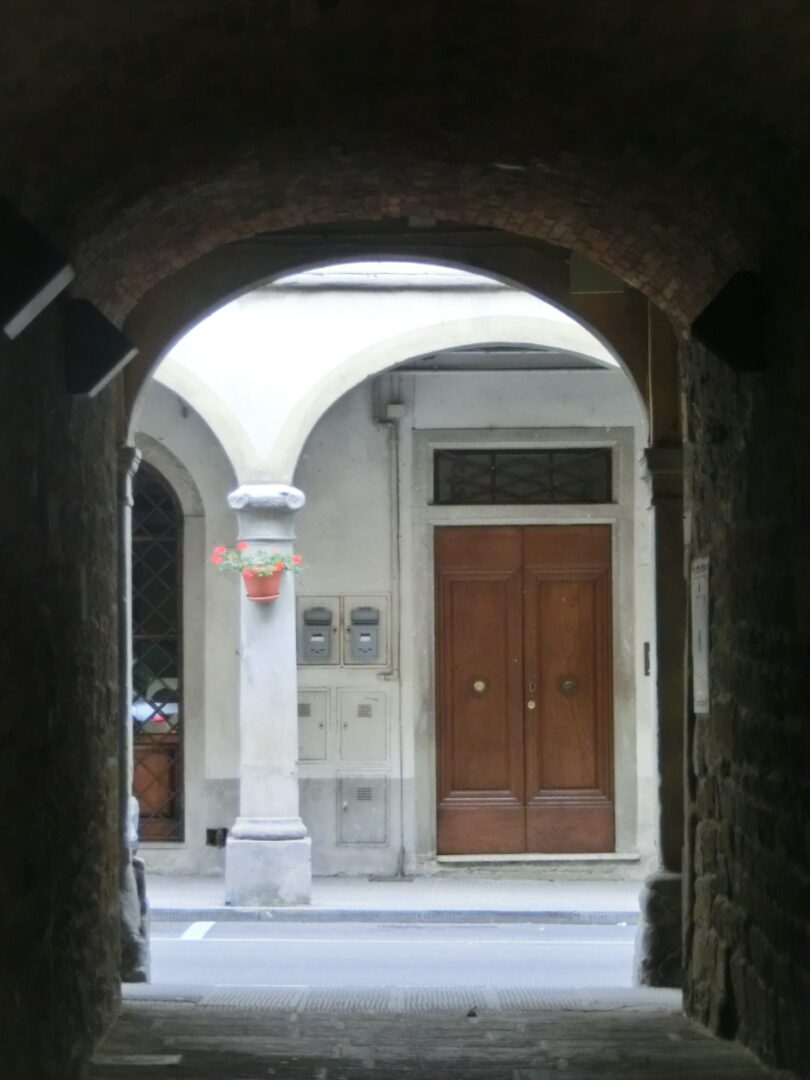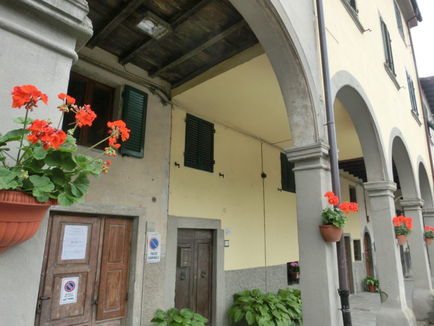 アレッツォ県北のカゼンティーノ地方、先日紹介したスティアの隣町・・・いや、行政的にいうと同じ市のプラートヴェッキオ。私たちの目当てはここの郊外にあるサン・ピエートロ・ディ・ロメーア教会だったのですが、せっかくなので旧市街にも行ってみました。なんの下調べもしてなかったので歩いただけですが、まずびっくりしたのが、この町並み・・・