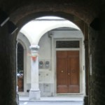 そしてその近くの広場にある壁祭壇には、ロッビア工房の色彩テラコッタ「玉座の聖母子と洗礼者ヨハネ・聖セバスティアン」。こちらはヤコポ・ランディーノ広場近くのエディーコラ(新聞・雑誌屋さん)にあるもので、柵もあるので分かりにくいですが、ぜひ探してみて下さい。