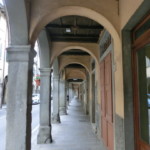 これはメインストリートのガリバルディ通りですが、旧市街のほとんどの建物がポルティコ=柱廊つきになっています。ポルティコのイメージはなんといってもボローニャ、モデナ、レッジョ・エミリアなどエミリア・ロマーニャの町なのですが、こんなところに柱廊だらけの村があるとは意外でした。他の田舎町と同じく、日曜なのでほとんどの店は閉まっていたのですが・・・これまた意外なもので楽しませてもらいました。それは・・・