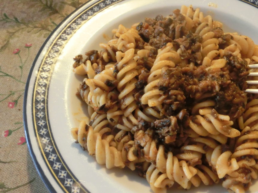 味は淡泊なので、いかようにも使えます。うちはニンニクとイタリアンパセリで炒めて付け合わせにしたり、ピッツァの具にしたりが多いですが、こんな風にちょろっと余った時にやってみて好評だったのが、この「キノコのラグー」。ラグー=ミートソースを指しますが、挽肉みたいに細かくポロポロにして煮込めるものも「ラグー」と呼びます。例えば、タコを刻んでトマトなどで煮込んだ「タコのラグー」とか・・・それのキノコ版。パスタに絡めるだけでなく、特にポレンタのクロスティーニの具や、うちではハンバーグのソースなんかにも使います。余ったら冷凍保存もOKだし、あると便利な一品ですよ。