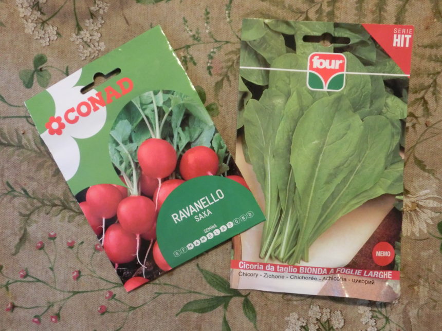 前回の更新より2週間・・・当時は雨が多く寒かったくらいですが、この1週間いきなり真夏になりました。一番最初に植えたサラダ菜は全部消費したので、余った土地に何を植えよう?と考えてたのがこちら、カットチコリと二十日大根。カットチコリって書きましたが、日本語ではなんていうか分からないのでイタリア語=Cicoria da Taglio をそのまま訳しましたが💦 これ、オルチャのばーちゃんがいつも庭に植えていた、カットしたらまた生えてくる便利なサラダ菜で、ばーちゃんは「ラディッキーノ」と呼んでいたもの。ばーちゃんみたいに、囲って土を盛りました。