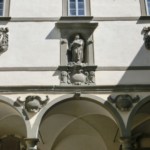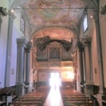 内部は美しい幾何学模様の大理石、天井画は1700年頃の作品。その他、聖具室にはアンドレア・デッラ・ロッビアの色彩テラコッタなどがありますが、ヴァッロンブローザ祭壇画などはフィレンツェのウフィッツィ美術館やアカデミア美術館に所蔵されています。主祭壇手前の翼廊は礼拝堂があり、特に向かって左側のサンジョヴァンニ・グアルベルト礼拝堂とサン・サクラメント礼拝堂(写真下)は必見です。