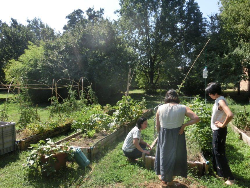 一番のお宝はやはりバルサミコ酢なのですが、田舎暮らし仲間としては、見ておきたいのがやはり畑(笑)。そして、お楽しみややはりランチです。毎回そうなのですが、みな料理好き、というか料理のプロ2人、こうやってわいわい皆で料理して、おしゃべりして、の時間が楽しいのです。この日も気づくと12時半を過ぎていて、Akaneさんのお子さんたちが「お腹すいたー」とばかりにやって来ました。