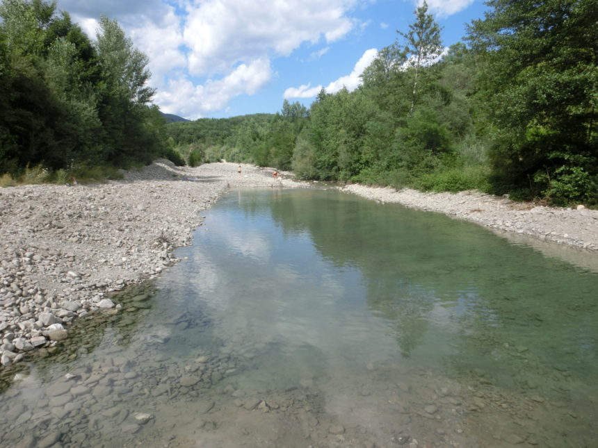 エルサ川に続く、トスカーナの遊べる川巡り第二弾!は、コルサローネ川。アレッツォ県のビッビエーナにあります。長男のゴム靴がサイズアウトしたため、岩場が少なく素足で入れるような平たんな川、ということで今回はここへ・・・その中でも2つ天然プールのようになっているところを目指したのですが、グーグルマップに翻弄されながら(マイナーな場所であればあるほどあまり信用してはいけませんね)、到着したのは小さいほうの天然プール。疲れていたので、今回はとりあえずここで遊ぶことに決めました。