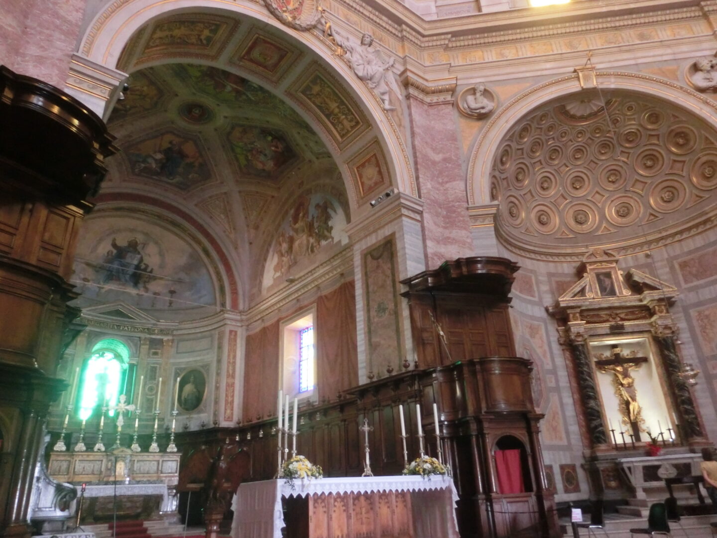 モンテフィアスコーネに向かう道からも、法王たちの要塞からも、どこからでも見える大きなクーポラを持つ大聖堂~イタリア国内ではなんと10番目の大きさ!今では小さな村ですが、教皇領当時のこの地の重要性が分かりますね。建設は上述の教皇ウルバヌス5世に命によりますが、金銭的な問題もあり当初の計画通りには行われなかったとか。現在のクーポラは、火事で損傷した後に1674年に再建されたものです。