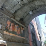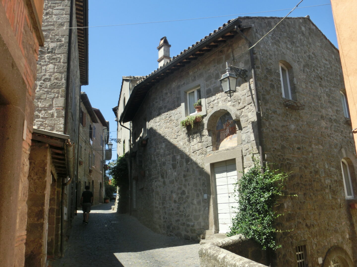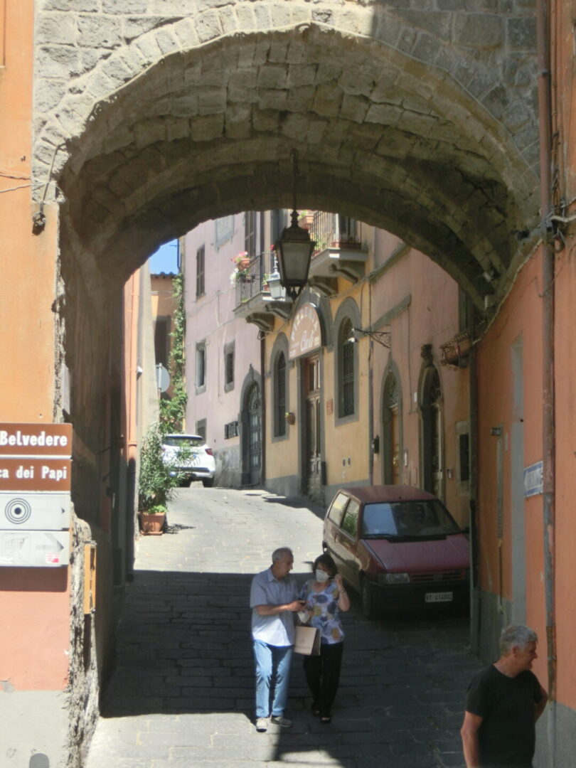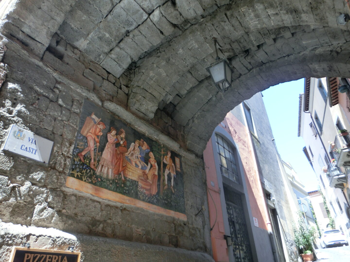 サンタンドレア・インカンポ教会を向かって左側のアーチを抜けると、村の中心となる広場、そしてその先には商店などが集まるメインストリート・カヴール通りがあります。一方、サンタンドレア・インカンポ教会を右側に見てまっすぐのアーチを超えると、カスティ通り、そこからピエーヴェ通りへ。私たちはこの先、法王たちの要塞下に駐車していたので、情緒あふれる落ち着いたこの通りを歩き、モンテフィアスコーネ観光を終えました。