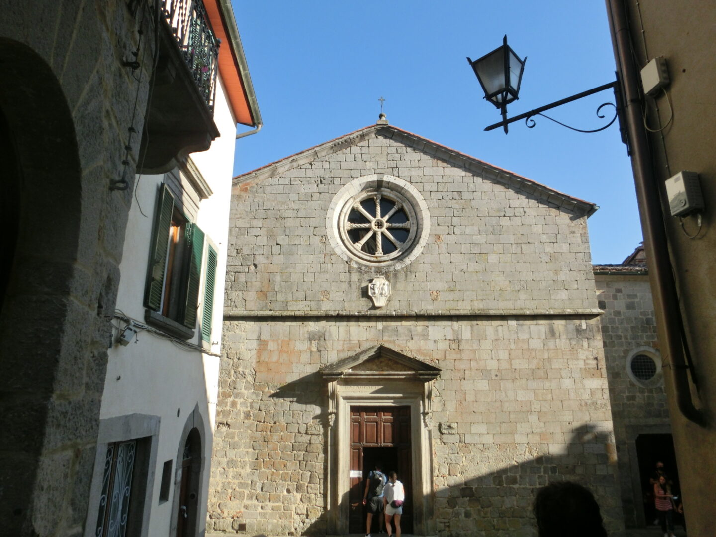 サンタ・フィオーラの旧市街は上下2つに分かれているもの特徴的。これまでに紹介したのが上の旧市街で、下の旧市街へは、この教会正面右側に続く道からアーチをくぐって下っていきます。下る前に必ず見て頂きたいのが、城壁からの絶景!