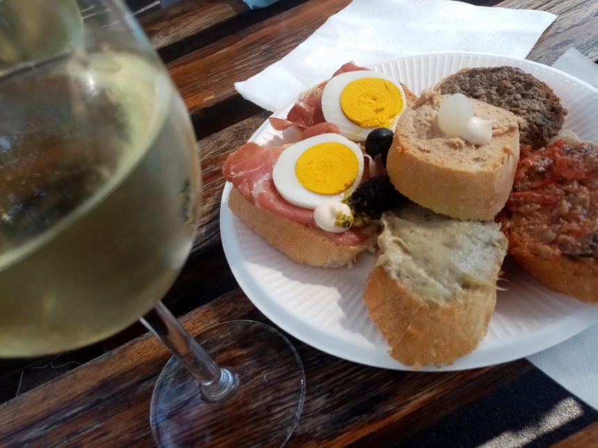 昨年にトラットリアの方へ行ったけれど、テイクアウトの方はかなり久しぶり。実はトラットリアよりも、テイクアウトの方が私は好き。カウンターから好きなクロスティーニ選べるのもいいし、ワイワイした雰囲気もいいし、テイクアウトと言ってもトラットリアの厨房からトラットリアと同じ料理が出てくるし、そして何よりコスパ最高!さらに、外に風も心地よいテーブル席があるんです。