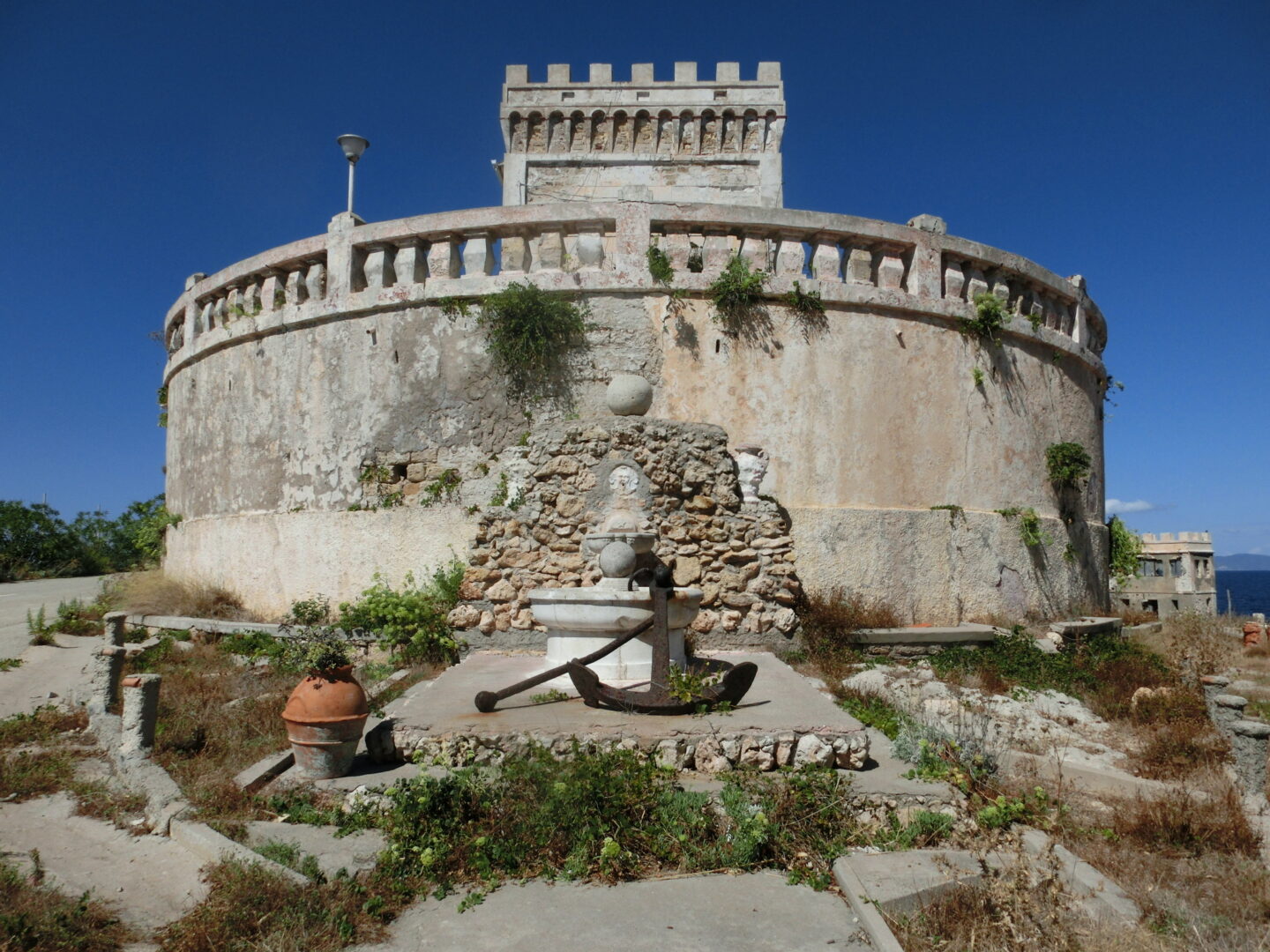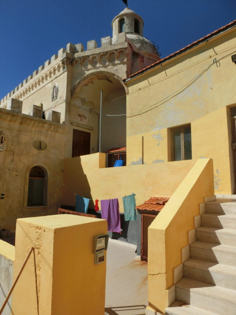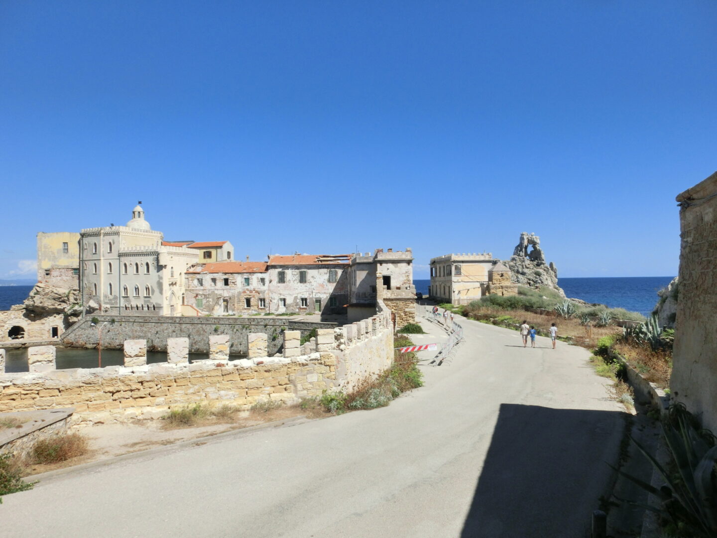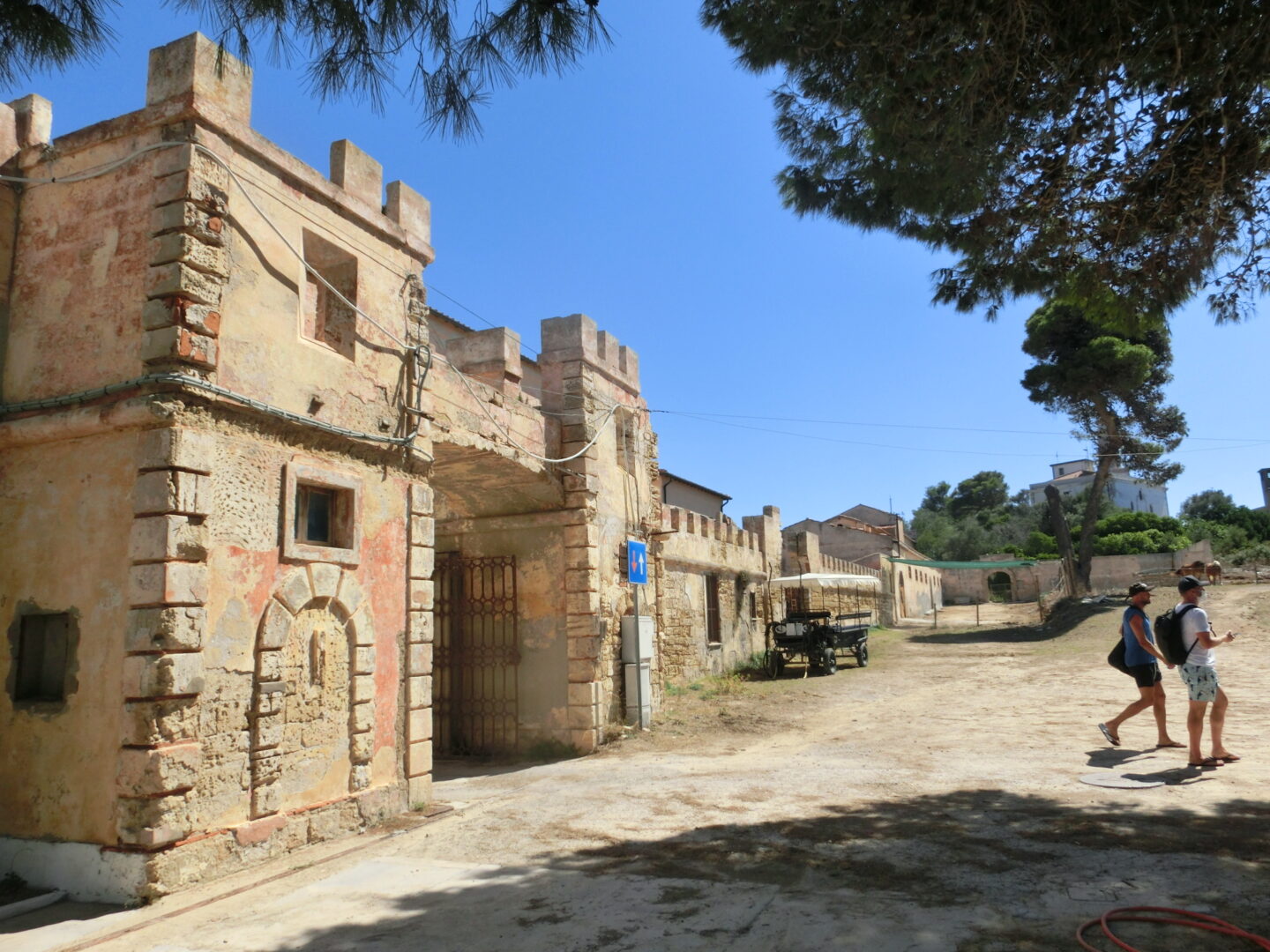 フェリーが付いた港の横には、スペーコラ宮と壁に囲まれた旧港が。ともにピアノ―ザが流刑地となった、1800年後半の建築です。アラブの雰囲気も漂うちょっと異国風建築ですが、残念ながら大きな修復もされぬまま、現在は見学なども行われていません。
