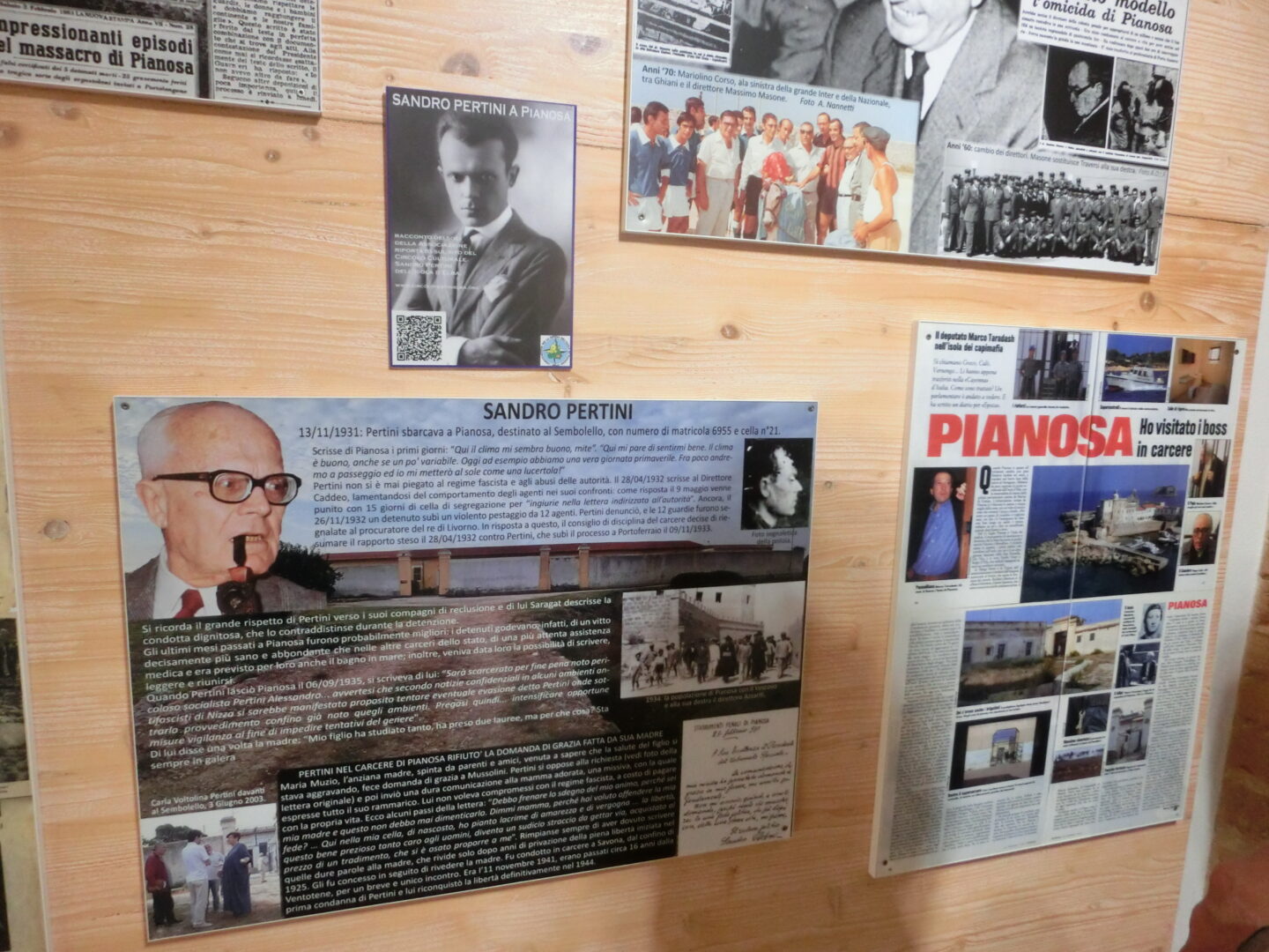 かつての郵便局は現在ピアノ―ザ保護協会となり、かつてのピアノ―ザ島の様子を写真パネルなどで紹介しています。面白かったのは、太古の昔、モンテクリスト島以外のトスカーナ群島は本土とくっついていたこと、そして刑務所に収容されていた有名に人物の紹介~後の大統領サンドロ・ペルティーニや、弁護士・警察官を殺害したマフィアのボスなどなど。