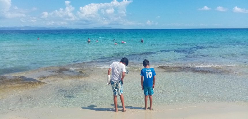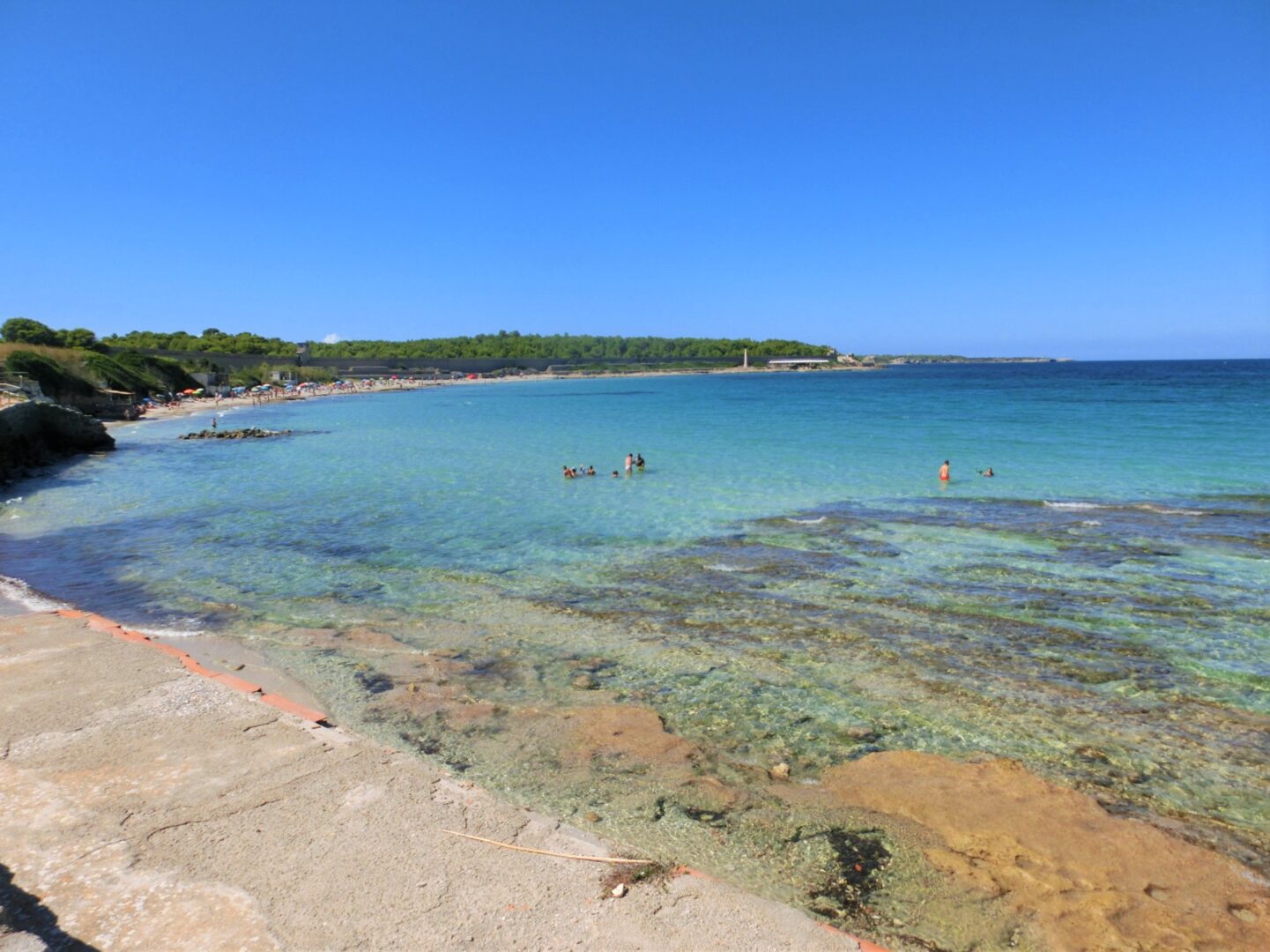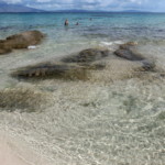 さてこの美しいビーチ、遠浅のこともありますが更に透明度が半端なく、ここはカリブか南太平洋か?というような異国の雰囲気満点です。カーラ・ジョヴァンナビーチの奥(北側)は、浅いながら岩場も多く、スノーケリングにぴったり!浅いからお子さんでも大丈夫だし、ただの水中眼鏡でも十分魚が楽しめます。岩場に囲まれた空間は、まさに自然の水槽と言う感じで、たくさんの様々な魚が見られました。ただ、浅いゆえにお腹を岩でこすったりしがちなので、気を付けて泳いでくださいね。