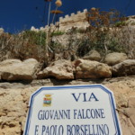 そしてこんな看板も見つけました。エルバ島、特にピアノ―ザ周辺はイルカに出会えることでも知られていますが、なんとウミガメも!イルカに比べてさらに確率は低いそうですが、「もしこんな跡を見つけたら24時間体制の1530に電話を!」=ウミガメの産卵の印なので、ツーリスト・海の家・清掃車などが卵をつぶさないために、ビーチ所有者と電話先の国立公園や環境保護団体のスタッフを呼び、速やかに保護の措置が取られるようにするためのものです。