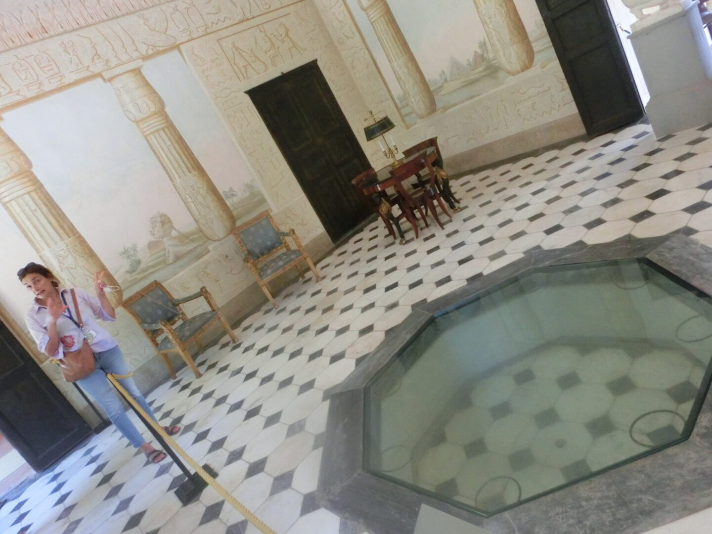 もう1つは、食事の間とされていた通称「愛の絆の間」。ナポレオンは子供を授かることができなかったジョセフィーヌと離婚し、ハプスブルグ家のマリア・ルイーズと1810年に結婚、翌年に息子が生まれていました。しかし、ナポレオンがエルバ島に行った後も、マリア・ルイーズと息子はオーストリアに隠居し、しかも護衛監視役の伯爵と恋に落ちることに・・・そんなことを知る由もないナポレオンはマリア・ルイ―ザを待ちわび、リボンで結ばれる2羽のハトを自分と彼女に置き換えたのです。なんとも切なくてわびしい・・・
