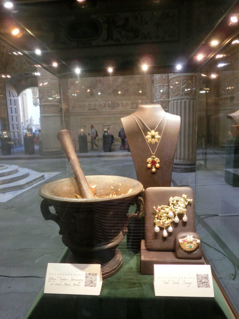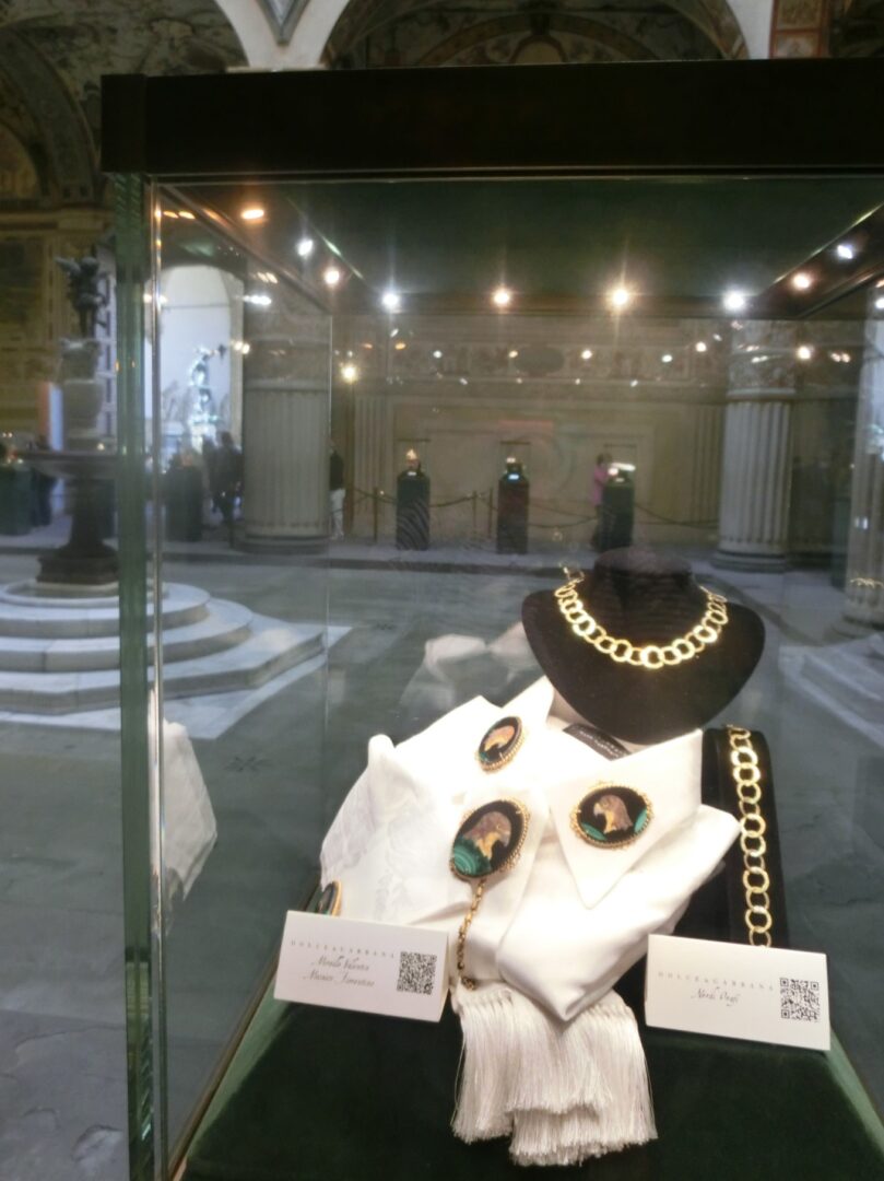 そして先日、その展示会の1つ覗いてきました。ヴェッキオ宮殿のミケロッツォの中庭で行われているフィレンツェ職人の作品展。内容はテラコッタ、シルク、金、銀、皮革、籐、クリスタル、磁器、ガラス、木、ブロケード、羽、飾り玉、貴石、フィレンツェモザイクと幅広い内容で、とにかく見てるだけでうっとり・・・