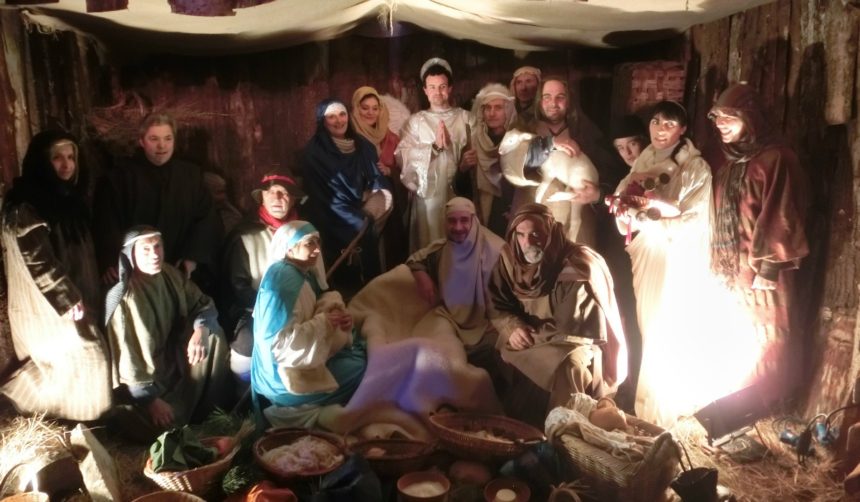 前置きが長くなりましたが、 Vivente(生きた) と言うのは、このシーンを人形でなく人間が再現するもの。活動の中心になっているママ友からことの成り行きを聞くと、小学校1年生の保護者会で 何か子供と町の人とが一体となったイベントをやりたいね 、という話から決まったそう。本当に小さい町だから、そういう団結力はなかなか強く、実際、たくさんの子供たちとその保護者、役所や商店の人が参加しています。近年は他の村に呼ばれたり、新聞やCOOP情報誌の地方版に掲載されたり、年々有名になってきているんですよ。