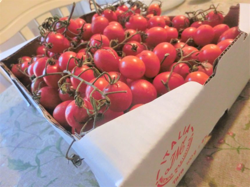 毎週1回のおらが村の農家のデリバリー。ある程度のオーダーがないと申し訳ないので毎週ではないのですが、1か月に2、3回お願いしています。今回は我が家にはなくてはならない小麦粉がなくなりそうだったので、合わせて野菜や果物も。今回はおそらく終盤のプチトマトが破格だったので、キロ売りでなく、更にお得な2.5キロの箱買いをしてみました。農地は標高500m以上にあるのにまだ大丈夫なんだ、と思って聞いてみたら、数週間前に収穫し、納屋に吊るして熟したものだそう。届いたプチトマトは、真っ赤でちょうどいい熟れぐらいです。こうやって土がついているのも農家直送のしるし。