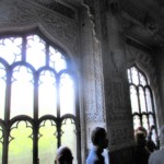 そして、見学の最後は礼拝堂。洗礼盤もあったのですが、ここで一家の子孫が洗礼を受けたのでしょうか?侯爵はここで祈りを捧げたり、懺悔をしたのでしょうか?入った時の興奮は落ち着き、各部屋のすばらしさにただただ感動する一方、どうしてこれほどまでの作品が、こんな状態になるまで放置され、崩壊する危機に直面しなければならないのか?やるせなさ、はかなさの残る、特別見学でした。この城が「過去の伝説」になることなく、再び誰もがこの城と、この城にかけた1人の男性の生涯に触れられることを祈らずにはいられません。