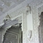 そして「蝶の間」。白いので分かりにくいですが、その装飾の細かさに驚くばかりです。特に蝶の間はあらゆる場所に鏡の部分があり、キラキラと華やかで幻想的。写真がブレているのは、建物内はほぼ電気がなく自然光だけだから。部屋によってはかなり薄暗く、かつ狭い部屋では人も押し気味で自由に動けませんでした。