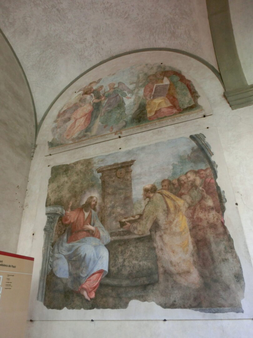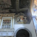 しかし、この教会の本当の宝は、教会奥の司教座聖堂参事会室にあります。1493~96年に描かれた、ペルジーノの「十字架刑」。教会の中からは行くことができませんが、通常ならコロンナ通りの別の入口から見学することが可能だそうです。面白いのは、現在この部分は高等学校の内部となり、学校が開いている期間の火・木曜日 14.30 – 17.30に見学が可能だそうです。コロナの規制がなくなったら、ぜひ見に行ってみたいですね。