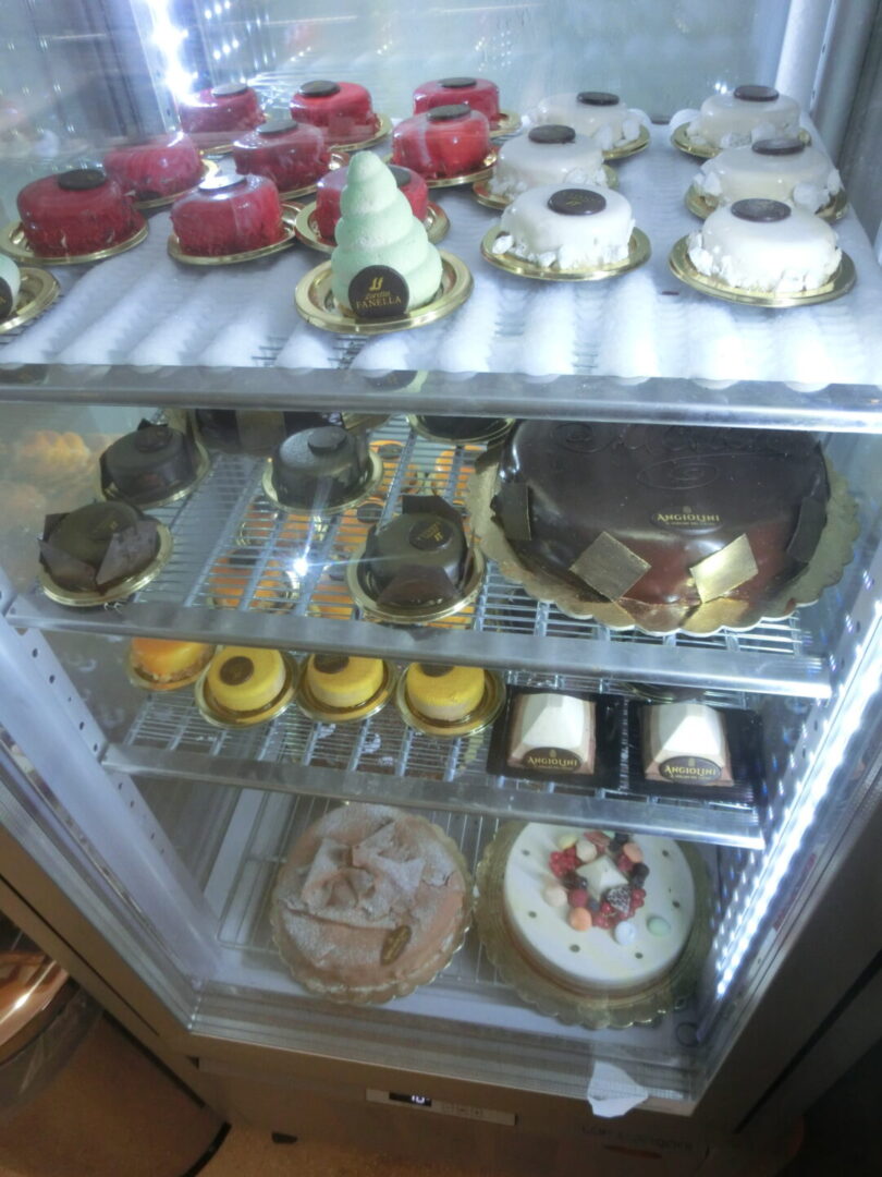 こちらは奥にある量り売りの板チョコたち。こちらもナッツ系、ベリー系など、組み合わせあ多彩で迷ってしまいますが、好きなものを好きなだけ買えるのが嬉しいですね。そして直営店だけのお楽しみは、ジェラート!フレーバーは、クリオロ種のダークチョコ、ピスタチオ、ヘーゼルナッツ、ビターオレンジ、ミックスベリー、ミルクなど。そしてチョコレート職人である前に菓子職人でもあるジョヴァンニさんだけあって、プチスイーツも販売。これは次回にリベンジしなくては・・・
