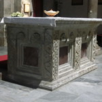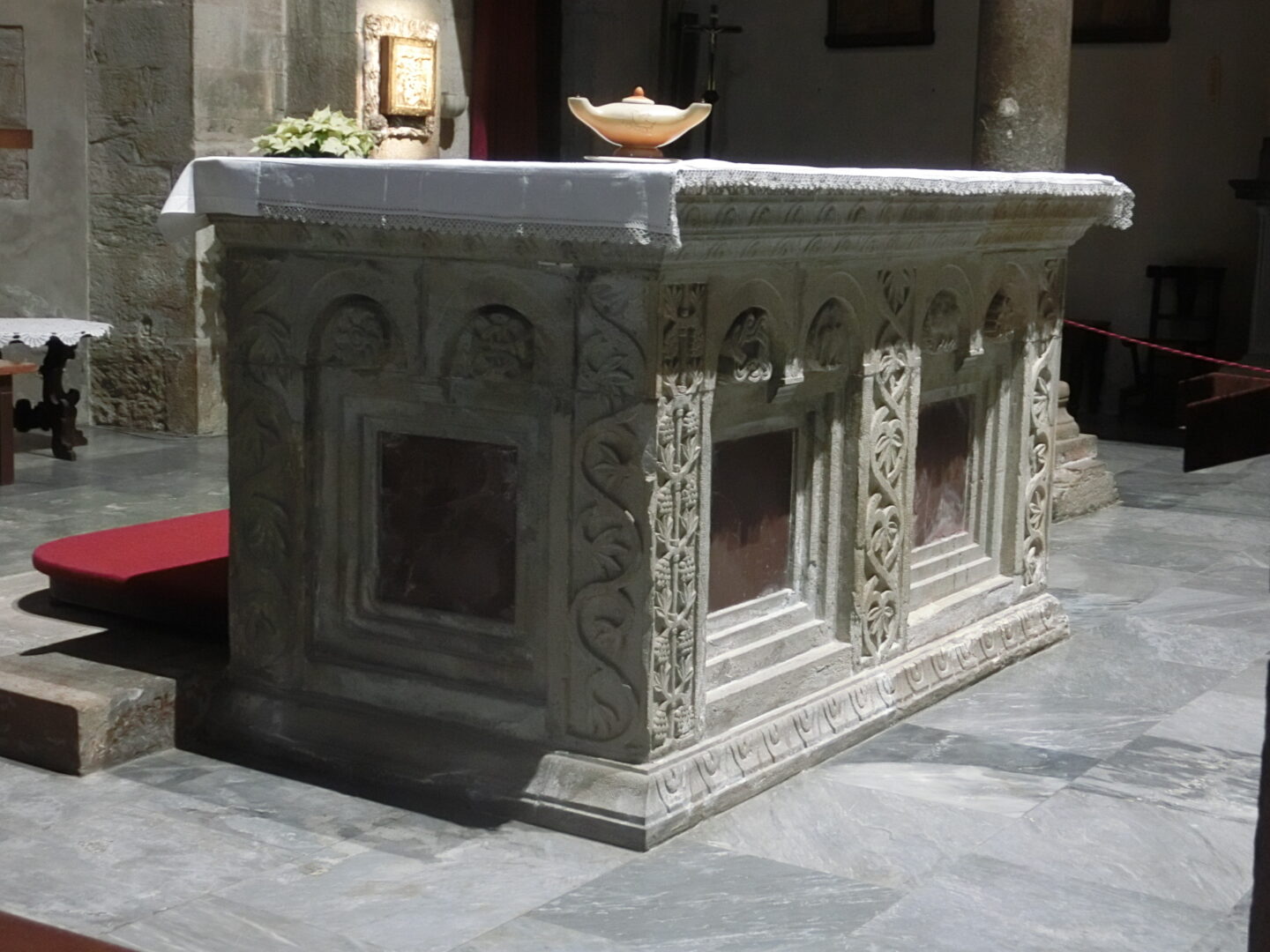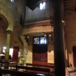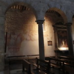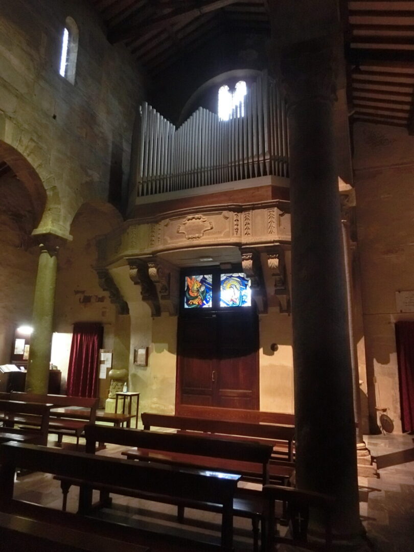 記録に登場するのはなんと934年ですが、現在残っているのは、12世紀のもの・・・それでも十分古いのに、ご覧のようにとても端正で美しい外観。ロマネスク様式の3身廊で、左右には6本の柱が並んでいます。柱は灰色砂岩ですが、左側の1本目、3本目、6本目はなんと!ローマ時代の大理石を利用しているそう。