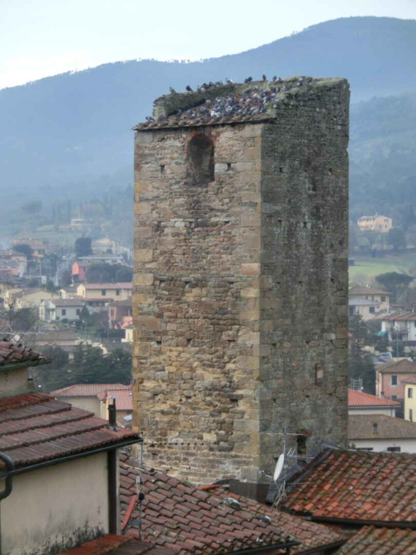 ズキューン!!と高い「時計の塔」に出ます。12~13世紀の建設で高さは20m、プレトリオ宮のすぐ下に建てられ、そこから村の道や周辺を監視する軍事目的の重要な役割を果たしていました。ピサがフィレンツェに統治され軍事的な目的が失った後は、屋根と時計が設置され、鐘楼としての役割を担うようになります。現在のこる時計の機構は18世紀のものですが、16世紀にはすでにこの時計の存在が記録されているそう。こちらも上れるのは週末だけで、ガイドなしとガイドありが選べます(詳細と予約はこちらから)。ちなみに、この塔から道を挟んだ向かいには、観光案内所があります。