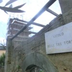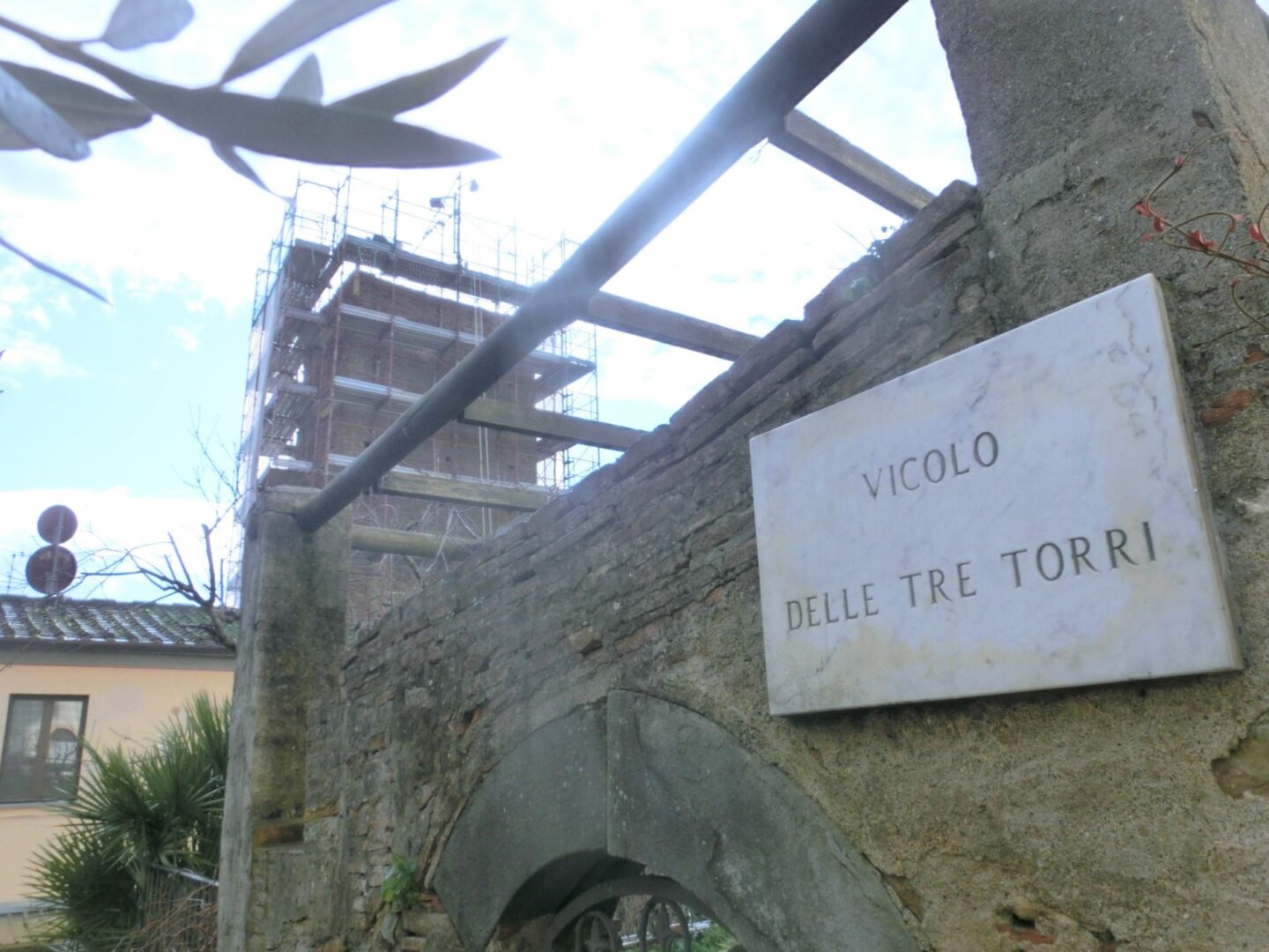 ヴィコピサーノで一番古い「古い郵便局」という12世紀の建物が。ご覧のように4つの建物から成り、この時代の特徴である当分半円のアーチに、この地方で採れるヴェッルーカノ石が使用されています。植木なども置かれてあったので、おそらく今も民家として使われているようですが、この広場に立つと本当に中世にタイムスリップした錯覚に陥ってしまいます。そこから村の中心に進むと、今度はヴィコピサーノで一番低い14mのピエトライア塔、修復中のマラニーマ塔を経て・・・