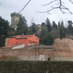 そして今度は「城通り」を進み、路地を上ると、最大の見どころであるブルネッレスキの要塞と、その奥にプレトリオ宮に出ます。要塞はフィレンツェ共和国から名を受けたブルネッレスキの設計で、1434年より建設を開始。そのころからヴィコピサーノはこのエリアの中心的な町として栄えますが、1500年代半ばより、トスカーナ大公国が安定した政権となってからは軍事的な重要性を失い、少しづつ今のような小さな村へと姿を変えていくのでした。要塞・プレトリオ宮・あとで紹介する時計の塔などは、今回は外から恨めしく見上げただけで終わりましたが、週末には予約制のガイドツアーがあります。ツアーに参加したい方は、こちらからどうぞ。