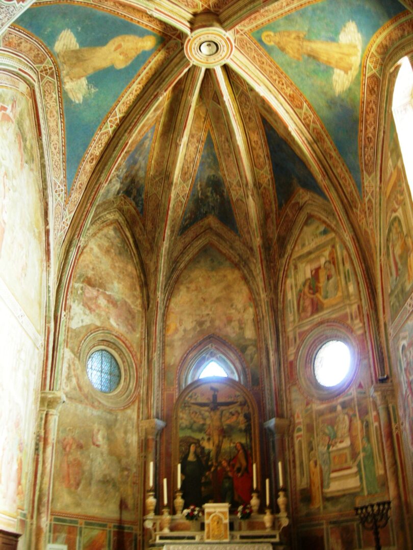 旧市街への入り口はいくつかありますが、町の北西のサンフランチェスコ門からスタート。そこからすぐのサンフランチェスコ教会は礼拝堂の壁画が美しいので、ぜひ入ってみてください。