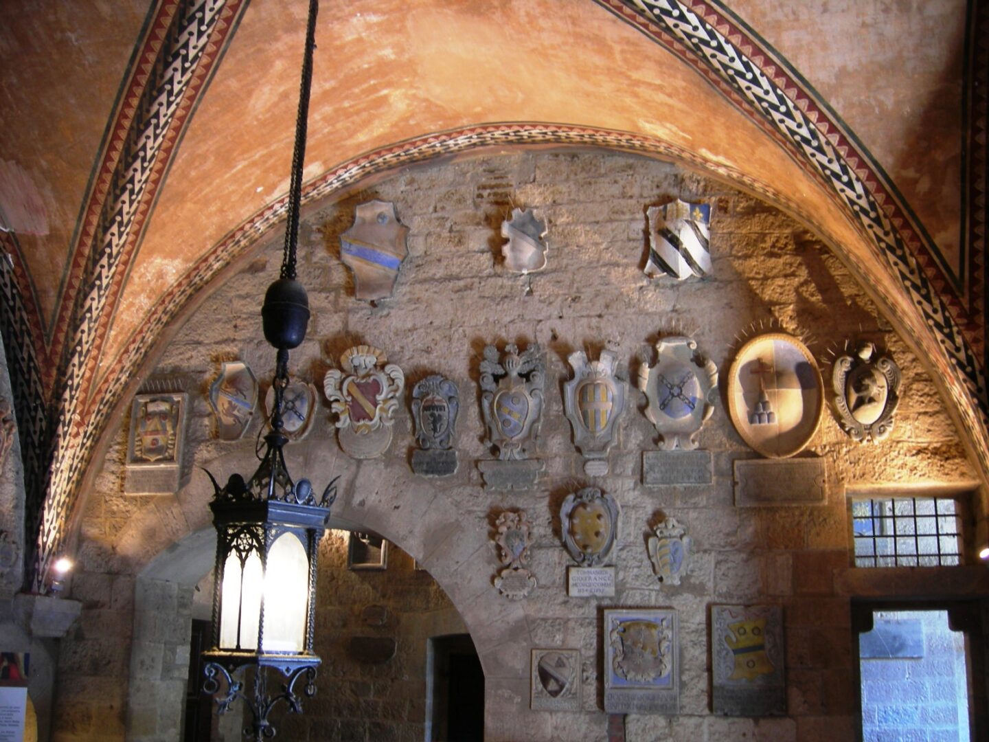 現在は市庁舎になっているプレオーリ宮では、ロビーに入ってみましょう。高いヴォールト天井に、フィレンツェの代表官の紋章がたくさん並んでいます。その横の建物には、観光案内所があるので、ここで地図や情報などを仕入れるといいですね。ヴォルテッラは 映画・ニュームーン・トワイライト の舞台で、映画の中ではマッツォーニ通りのマンホールがヴァンパイア世界への入口だったそう!この映画ファンにはたまらない、こういった撮影スポットを周る“ニュームーンツアー”もありますので、観光案内所でチェックしてみてください。