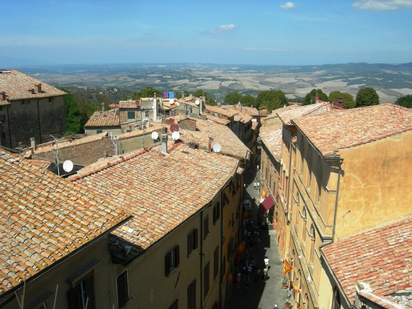今度は門からまっすぐ坂を上って旧市街の真ん中方向へ、そこのあるサンミケーレ広場にトスカーナ塔があります。このトスカーナ塔をはじめ、数本あるこのタイプの塔はかつての塔を家として再利用されていたもの。なので、あまり高くなく、上るのもあっという間ですが、旧市街が間近に見えて、とても迫力があります!
