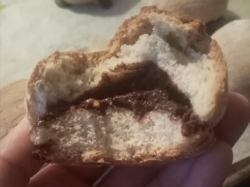生地が膨らんで行き場のなくなったチョコクリームがダダ漏れ(泣)。「しっかり閉じる」そして「過発酵に気を付ける・良いタイミングが時間的に焼けなければ餌をやる」「発酵の余力がある段階でオーブンに入れる」を次回の改善点として、次回こそ!完璧なチョコパンに!これができれば、次はアンパンもするよ~!!