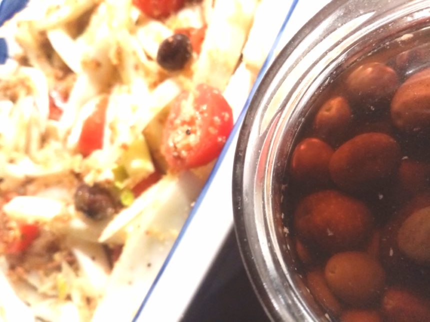 3つ目はうちのオーブン焼きと似てるので、やるのは1か2。オリーブと言えば、そう!うちの庭のオリーブ。塩水漬けにしてから、ほぼ3カ月経ったので、これも使えるし!とまずは1をやってみました。レシピは本当に簡単で