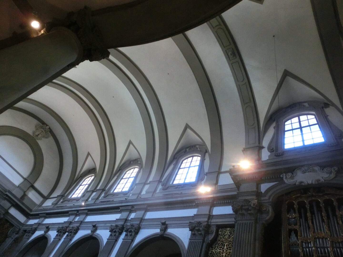 当初はロマネスク様式だったこの教会も、ペスト後にゴシック様式に建て替えられますが、現在の姿は18世紀の大改築で、1500年代後半の様式をモデルにしたものです。この改装で手を付けられなかったのは、入って両脇の礼拝堂と、ファサード裏と1600年代製作の内陣席だけだそうです。