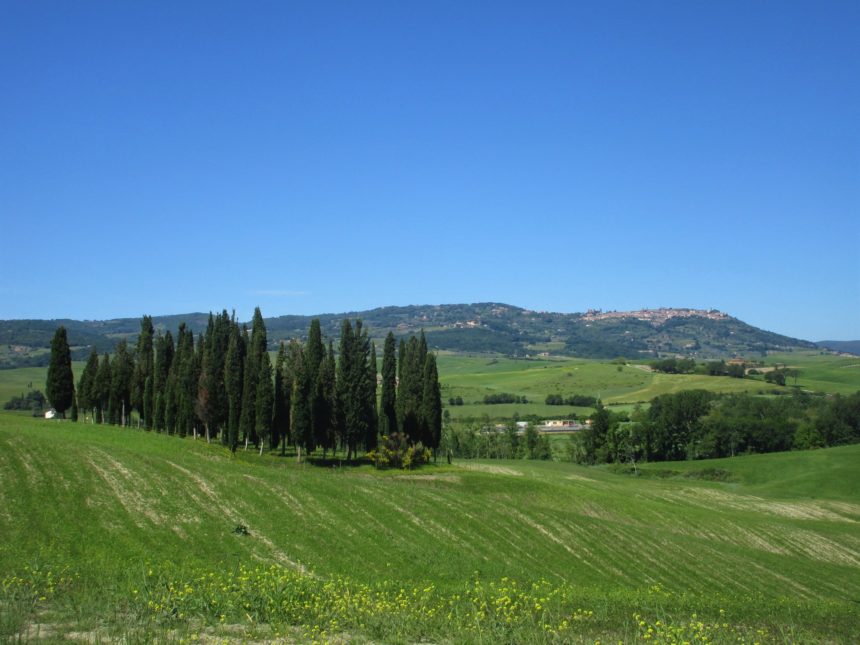 ※TOP写真はオルチャ渓谷の中でも有名な糸杉ですが、右奥に見えているのがモンタルチーノです。