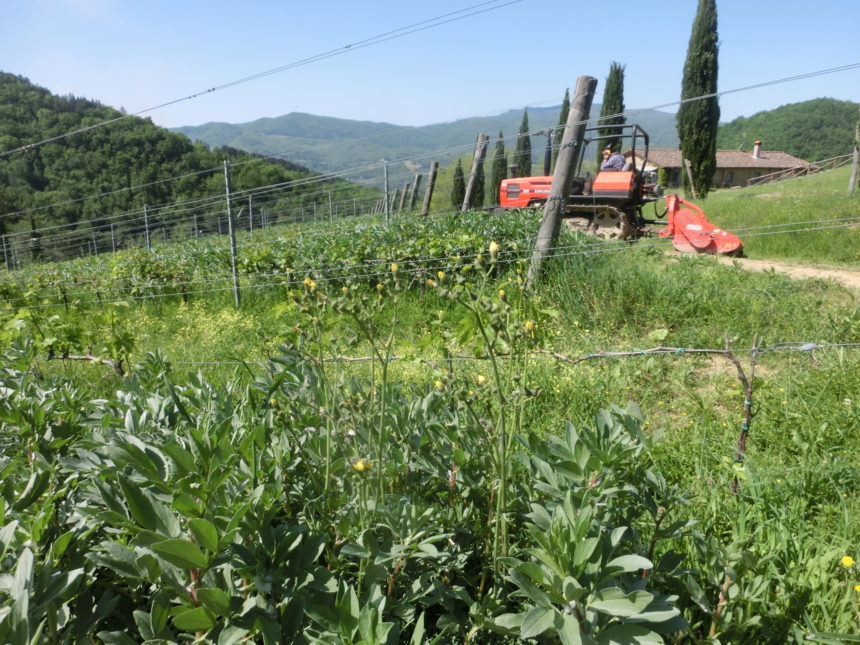 キアンティと呼ばれるエリアは広いですが、その中でも一番北にあるのが、このキアンティ・ルフィナの生産地域です。おらが村もこのエリアに位置するため、すでに2つのワイナリーを紹介していますが、数年前にできた新しいオーガニック・ワイナリーを紹介します。ここはキアンティ・ルフィナの生産エリアでも一番北。フィレンツェから直通電車で約55分、そこから車で10分ほどですが、最後は舗装のない山道をゆき、ぱあっと広がった空間の奥にあります。それまでの山道がうそだったのような、開放的な空間。こんな最高の自然環境で、自然のものだけでぶどうを育ててゆくのです。
