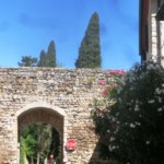 時計台のある建物は 市役所で1200年代の建物 。完全に行政用のようなので中には入れませんでした(大きな町では、市役所自体が歴史的建築物が市役所でミュージアム併設もあり、フィレンツェのヴェッキオ宮殿など。ミュージアムでなくても入れそうなところは入って見学してしまいましょう・笑)。そこから、要塞がある上へと目指します。市役所裏は、やしの木があるせいか何だかトロピカルな空間、一般家屋にもキレイにお花が飾られていています。ここではおじいちゃんが飼い猫を家に入れようと、ドアを開けて猫をじ~っと待ってる、というスローシティらしい一面にも遭遇しました(笑)。