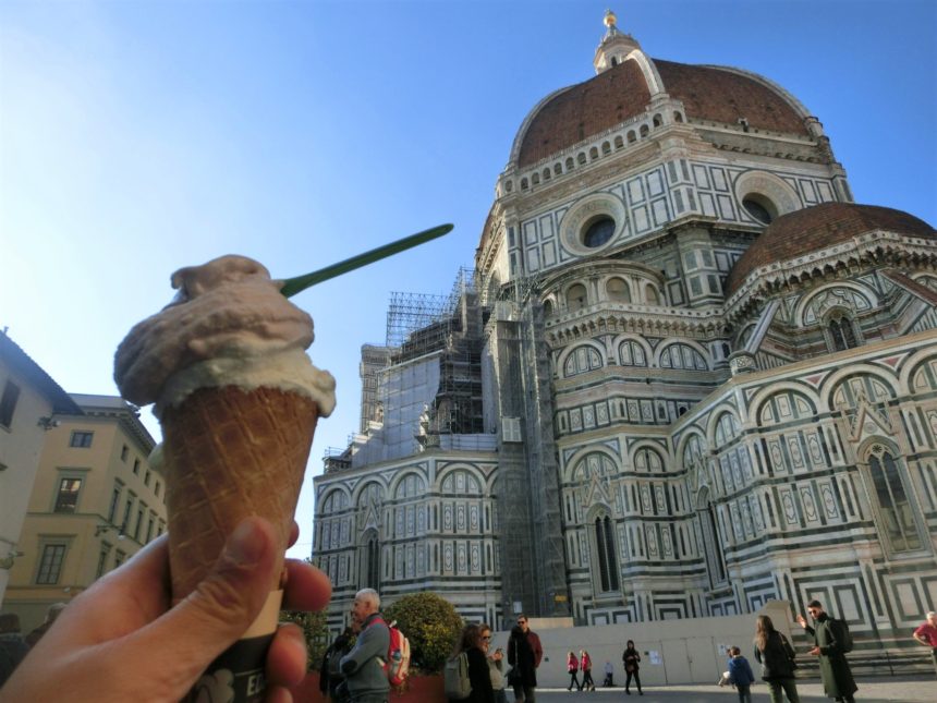 ジェラテリアは、今やフィレンツェでも1、2を争う人気ジェラテリア・エドアルド。ドゥオモ広場、とロケーションも抜群なので、よく行列ができています。