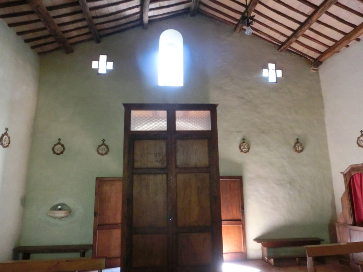 右側の壁には14世紀頃のフレスコ画の一部が残っていますが、元々ここにあった1585年制作の洗礼盤は現在はサン・クリーリコ・ドルチャのコッレジャートに、ジャンボローニャ作のブロンズ製十字架はモンタルチーノの教区博物館に置かれています。