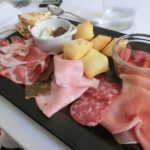 要塞オタクは走ってでも行きたいほどでしたが(笑)、腹が減っては戦ができぬ?いや、友人が予約してくれたレストランでまず誕生日ランチを堪能。場所はアルベルゴ・ラ・ロッカのレストランで、素敵な柱廊の下で日伊2家族でテーブルを囲みました。すべてが美味しかったのですが、他州に行けば必ずそこの郷土料理を・・・ということで