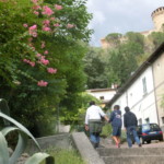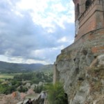 こうしてお腹いっぱいになった後はその消費に(笑)、この村出身のご主人の案内でまずは要塞に向かいます。要塞は1310年にこの地を支配していたマンフレーテディ家により建設されました。その後ブリジゲッラは3年間チェーザレ・ボルジアの管理下となり、1503年~1509年まではヴェネツィア共和国の支配下に治められます。ヴェネツィア支配時代にこの一番大きな塔と2辺の壁が建設され、ローマ教皇領になった1500年代末頃に小塔の屋根もつけられます。現在の美しい姿は、近年の修復とメンテナンスのたまものだそうです。