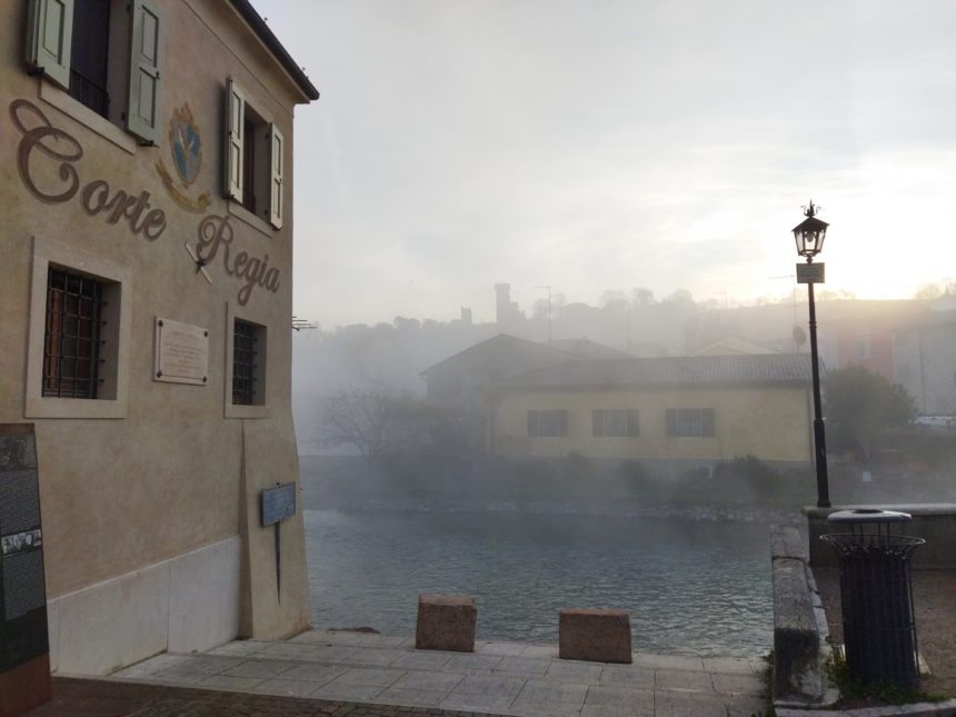 朝はこの通り、ヴィスコンティ橋とヴァレッジョのお城まで見渡せました。
