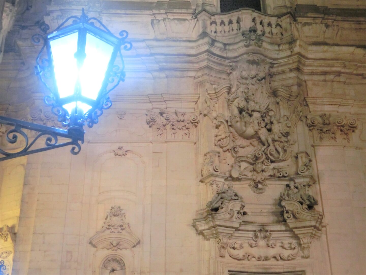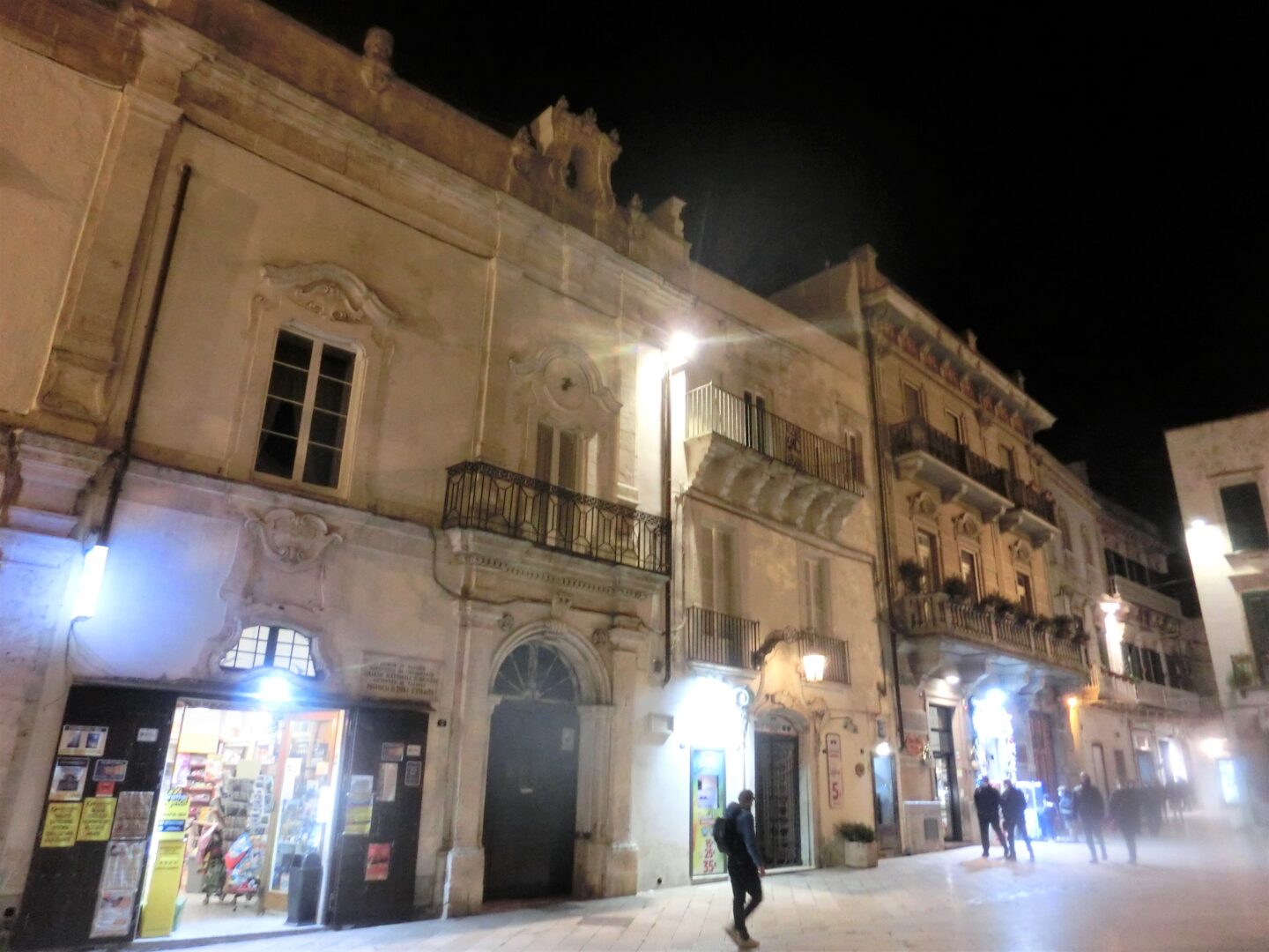 ゆるやかなカーブを描く柱廊付きの建物が目印の、マリア・インマコラータ広場。そしてその奥にはサン・マルティーノ大聖堂があるプレビシート広場へと続いている。暗闇に浮かあがるバロック様式の建物の美しさ、そしてこの奥行とちょい見せがたまりません。