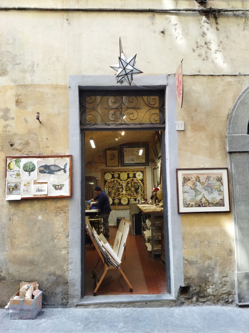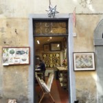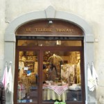 ともあれ、こんな短い道でもつい通りたくなるのは、職人系のお店が多いから。まずはピッティ宮殿側の入口にあるのがフィレンツェモザイクのお店。そして先に進むと美しい、そしてトスカーナらしいモチーフがいっぱいの Le Telerie Toscane 。いつも入りたいなーと思って時間切れなのですが、糸杉のアイテムは自分用にも欲しい!