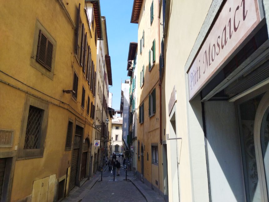 サント・スピリト通り、スパーダ通り、ネーリ通り、トスカネッラ通り、ディ・コンティ通り、ポルタ・ロッサ通り、アルビツィ通り、サン・ヤコポ通り、ピエトラ・ピアーナ通り、サン・フレディアーノ通り、ジョベルティ通り、ストゥディオ通りに続くフィレンツェの素敵な通りシリーズ第13弾は、ズドルッチョーロ・デ・ピッティ通りです。