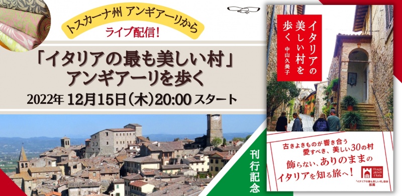 書籍「イタリアの美しい村を歩く」の出版にあたり、出版元の東海教育研究所さんでは新刊キャンペーンをして頂いたり、新聞広告やSNS広告を出して頂いたり、推薦を頂いた「イタリアの最も美しい村協会」の会長にインタビューをさせて頂いたり、12月15日にはアンギアーリより刊行記念ライブをさせて頂くことになったり・・・なんだかここまでしていただいて、嬉しいやら恥ずかしいやら、その尽力にお答えできるようにならないと!と切に思う毎日ですが、今日、また嬉しいことがありました。