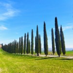 ここもトスカーナ写真集やSNSでおなじみの糸杉スポット。ポッジョ・コーヴェリというアグリツーリズモの前にまっすぐ並ぶ糸杉並木です。私はいつもこの前は通らずに、遠くから横の写真を撮影することはありますが、真正面は今回で2回目!圧巻~!!