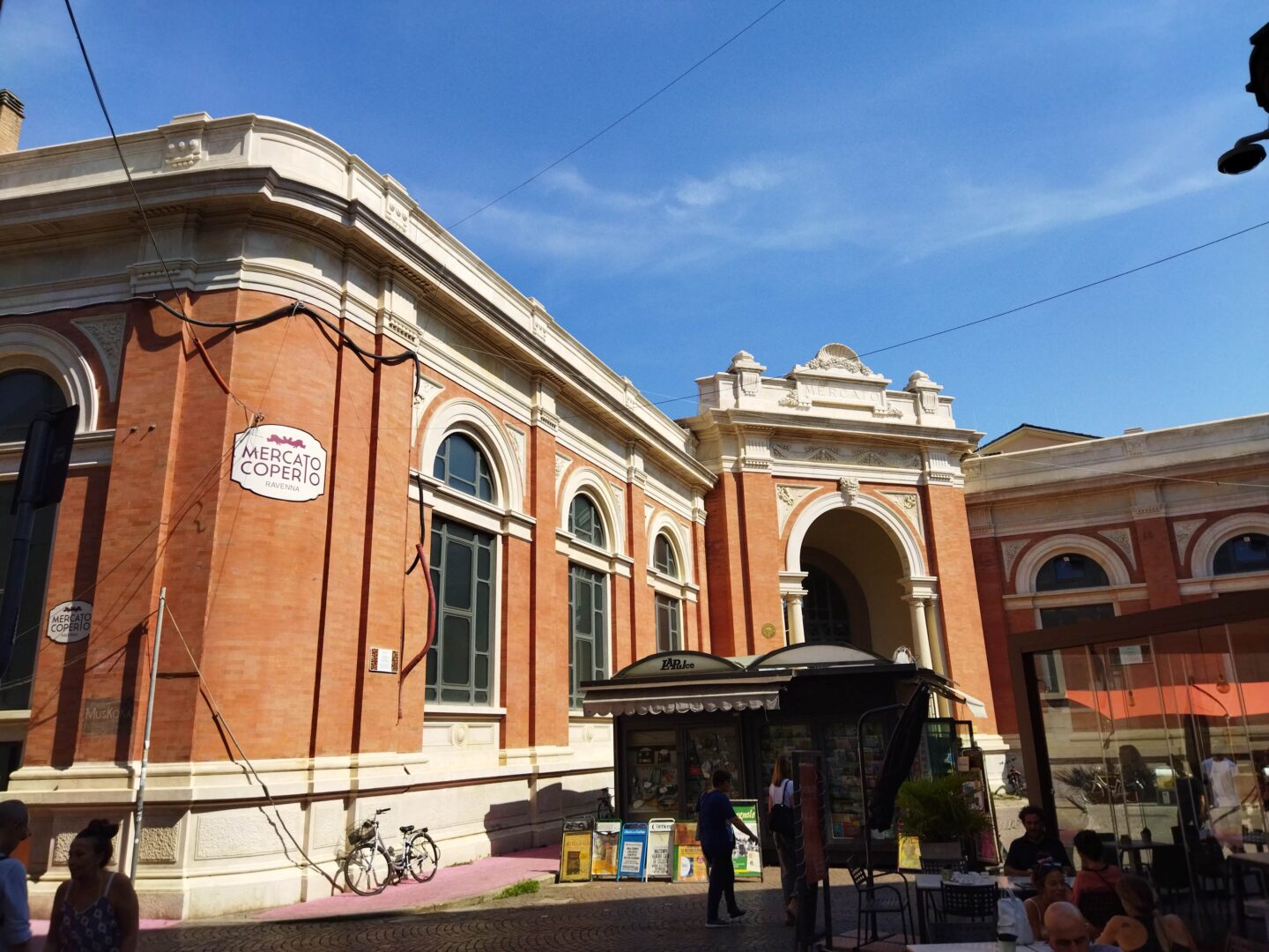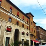 市場と言うと新鮮な野菜とか肉の店が並ぶのを想像されると思いますが、ここはロマーニャの食材を集めたお店、スーパーのCOOP、飲食店が入っています。レンガ造りの渋い建物の中はとても近代的でオシャレ。食事するもよし、お土産を買うもよし。